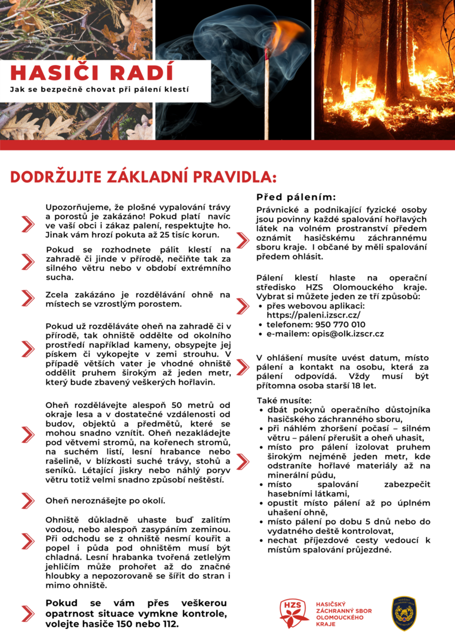 Úvod > Obec > Aktuality > Hasiči radí,jak se chovat při pálení klestí