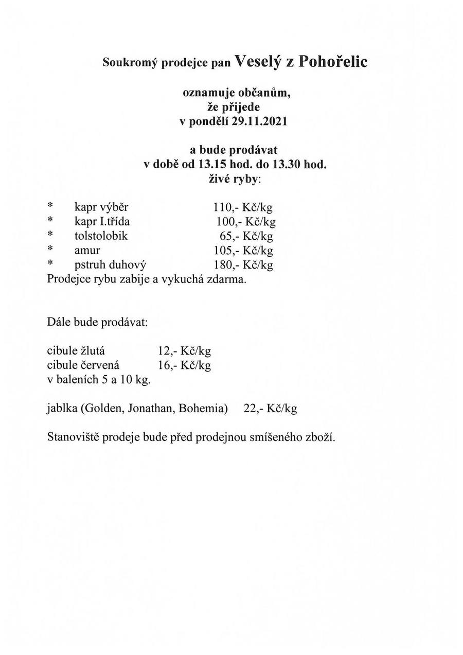 Úvod > Obec > Aktuality > Prodej živých ryb-pan Jaroslav Veselý z Pohořelic