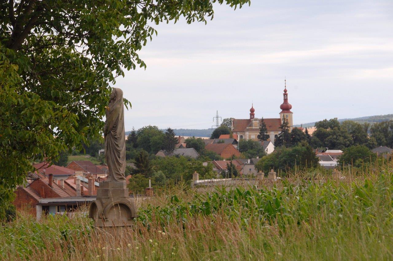 Spočinout pak můžete ve stínu urostlých lip na lavičce u citlivě udržovaného hřbitova, kam vás dovede cyklotrasa táhnoucí se kouzelnou krajinou.