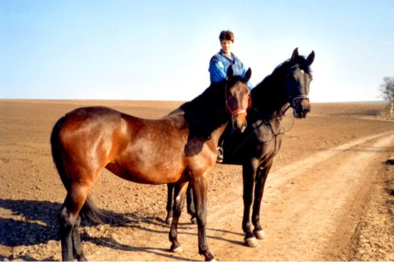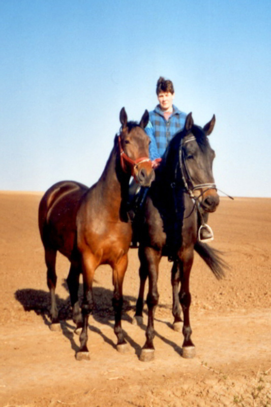Začátkem roku byla Bára dvouletá a začala jsem ji učit chodit na vodítku vedle Centy a vedla jsem ji ze sedla. Tak jsem vypohybovala dva koně najednou. Protože ve mě pořád přetrvávala touha vychovat si hříbátko vlastního chovu, rozhodla jsem se, že Centu zkusím znovu zapustit. Jako partnera jsem jí vybrala vraného hannoverského hřebce Dantes (po Avignon z Catalene). k naší velké radosti Centa znovu zabřezla a my všichni doufali, že tentokrát už zažijeme happy end.