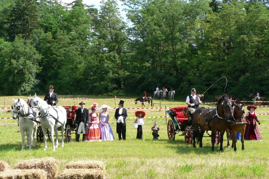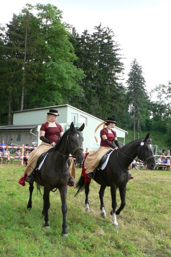 Do kolbiště vjely v krásných dobových šatech dvě jezdkyně – Tereza Formánková na Centě a Elena Tenčíková na Frolce. Po představení se publiku předvedly čtverylku na hudbu. Za své vystoupení a krásné šaty sklidily velký potlesk.