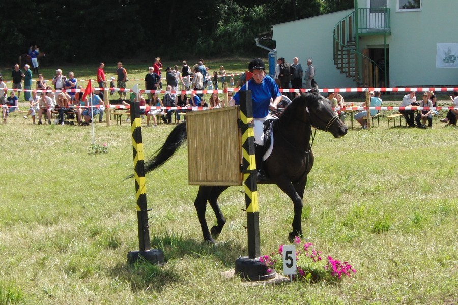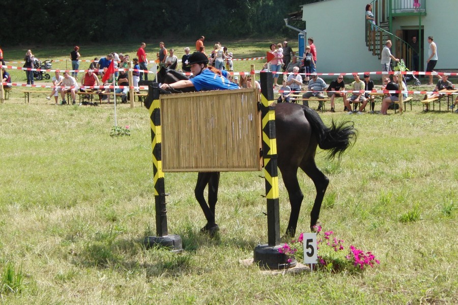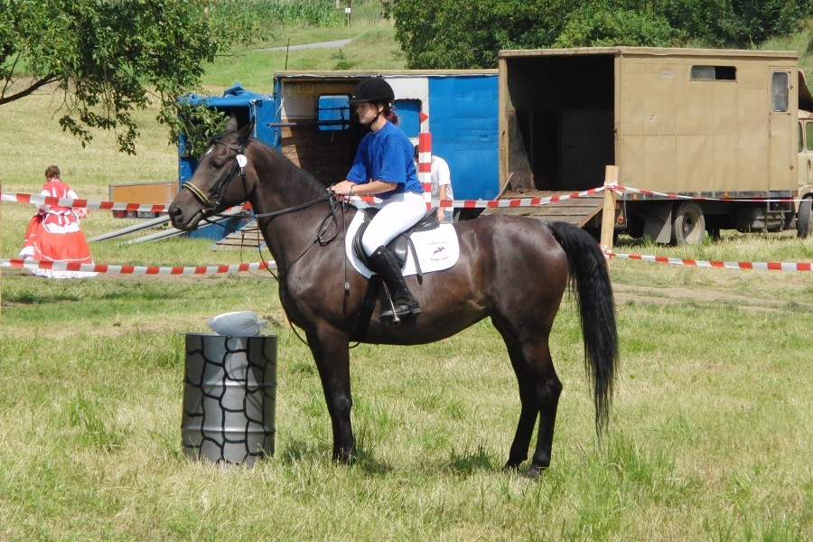 První soutěží byla JÍZDA ZRUČNOSTI. Soutěž byla opět rozdělena na dvě kategorie – začátečníky a pokročilé. Na trati na jezdce a koně čekalo 6 neobvyklých překážek a časový limit 4 minuty, do něhož se většina jezdců hravě vešla. Rozhodčím pro první tři soutěže byl pan Jiří Urban.