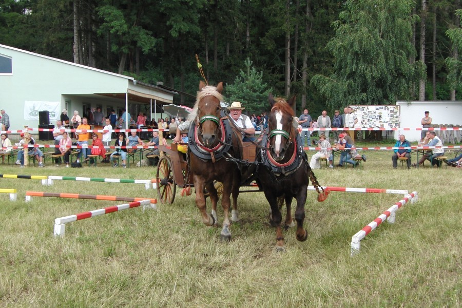 I v letošním roce se na start postavili pouze dva vozatajové. Snad se to v dalších letech zlepší. První se na trať s osmi překážkami vydal pan Jiří Foltýn z Němčic nad Hanou se svými chladnokrevnými klisnami.