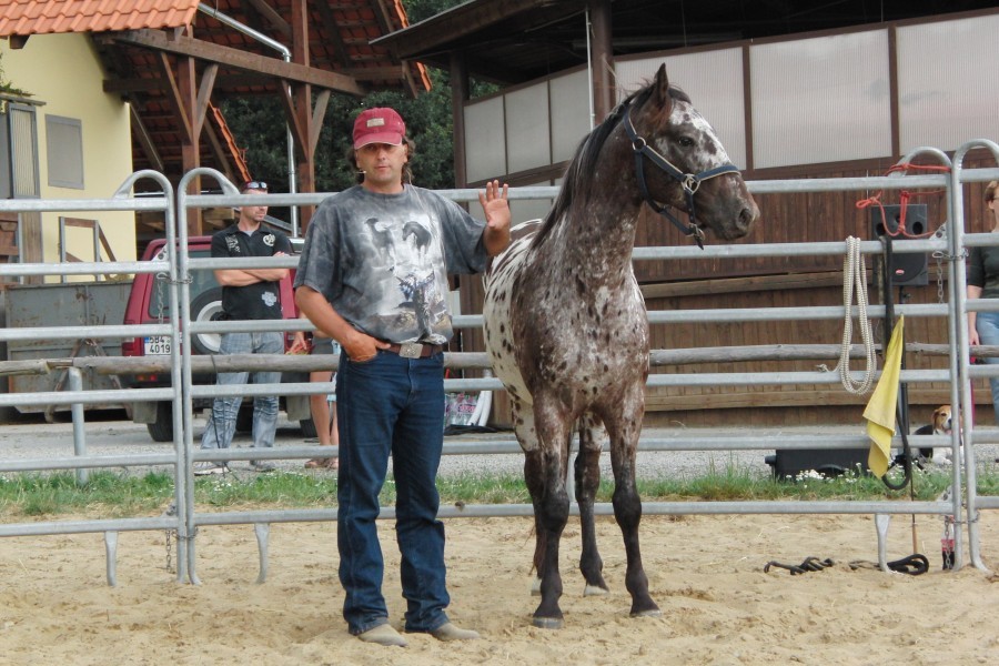 V sobotu se jednalo o ukázky práce ze země v kruhové ohradě a na vodítku, kdy Vašek početnému publiku neúnavně vysvětloval a předváděl tuto metodu partnerství mezi koněm a člověkem.