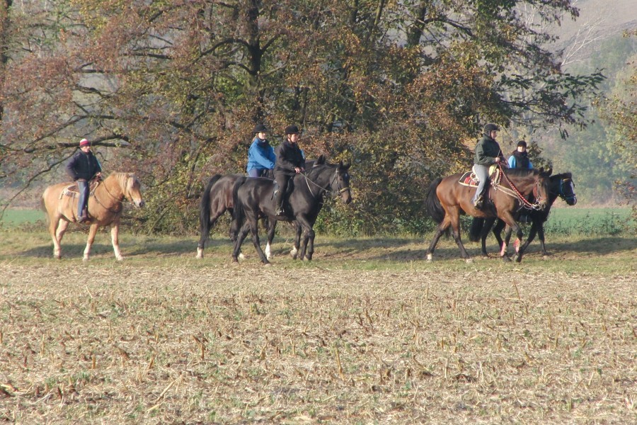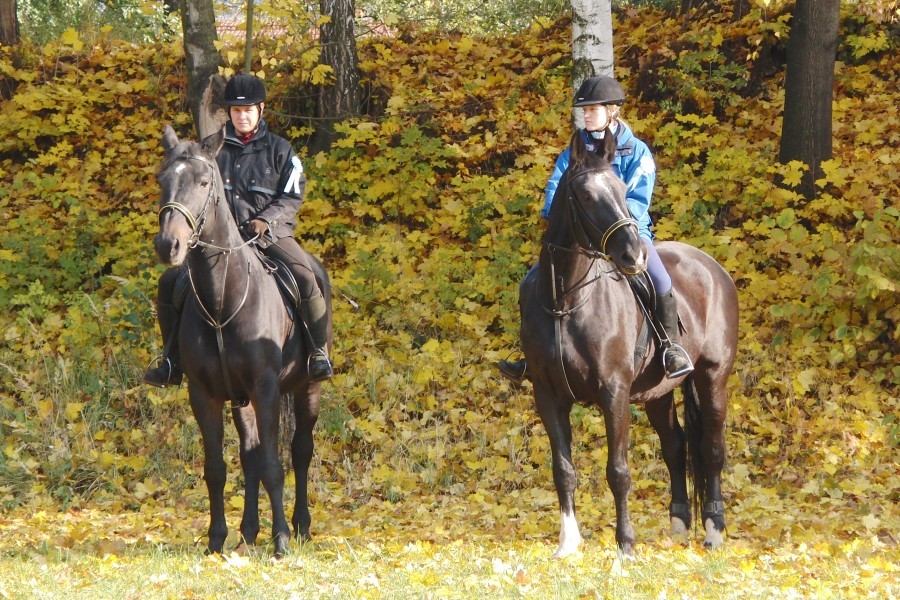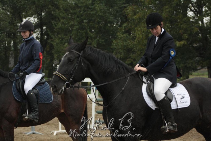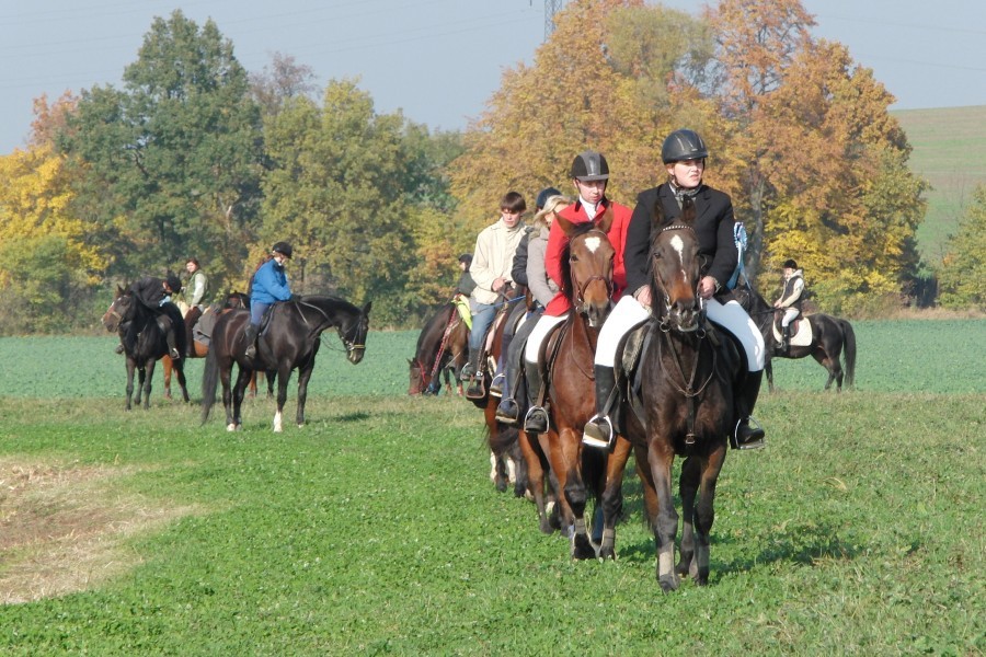 O týden později, 31. října 2009, jsme si vyjely na I. Hubertovu jízdu do Mořic, kterou zde pořádal pan Vlastimil Neckař. Počasí pro nás připravilo opravdu krásný den. Frolku si osedlala Iva Rádsetoulalová a Centu Lenka Kubíková.
