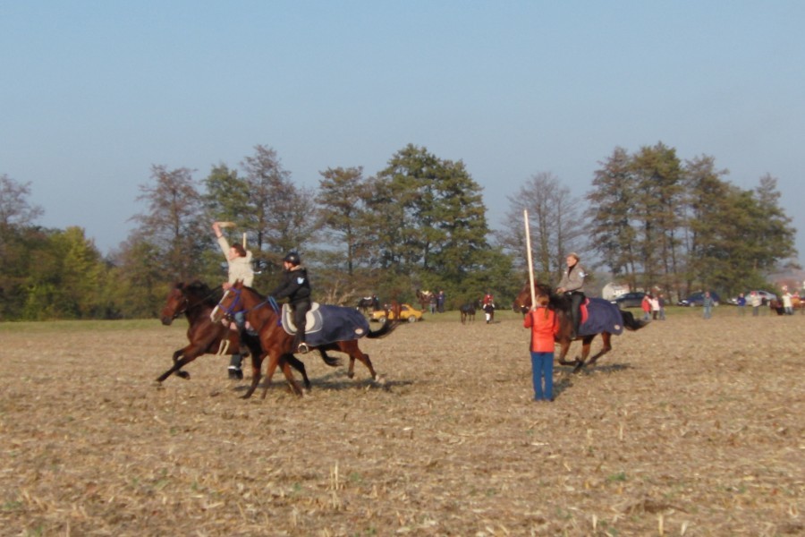 Na poli u Mořic byl pro nás připravený hon na lišku. Nejprve se uskutečnil dostih povozů, který, i když s náskokem, vyhrála Ivana Držálková ml. se svou párou malých poníků před panem Navrátilem a jeho jednospřežím. Poté byl odstartován dostih, který vyhrála Jarka Kolmačková a její super rychlá klisna A1/1.