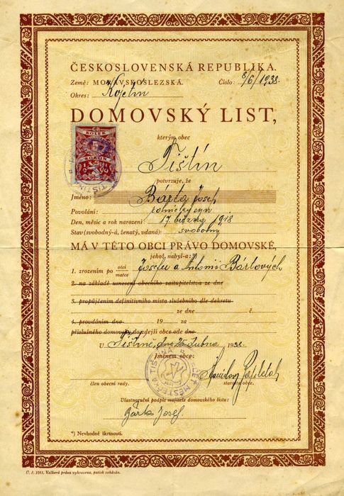 Dům č. 115 - Tomáš Bernovský, stolař, r. 1920