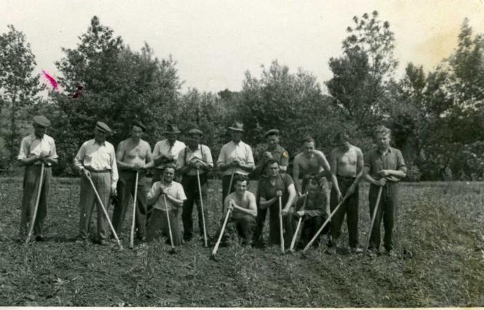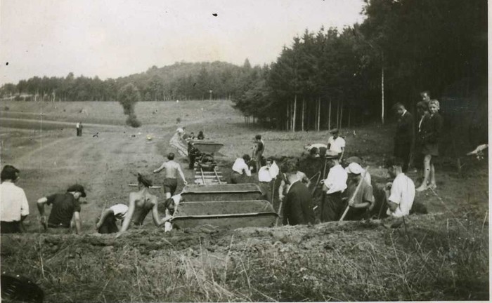 r. 1944, budování fotbalového hřiště v háječku
