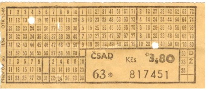 autobusová jízdenka z konce 60. let