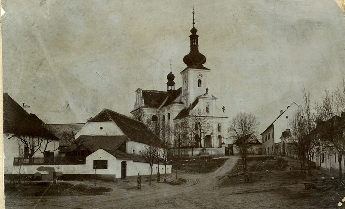 pohled na kostel, jak měl vypadat asi v 18. stol.