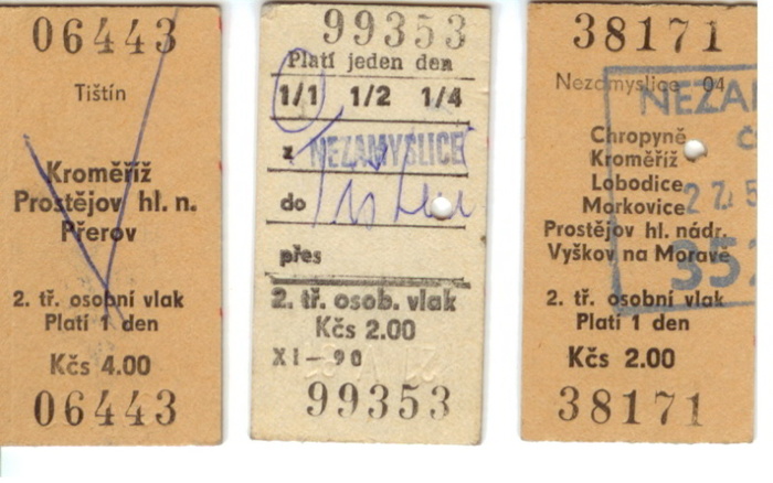 vlakové jízdenky z 80. let